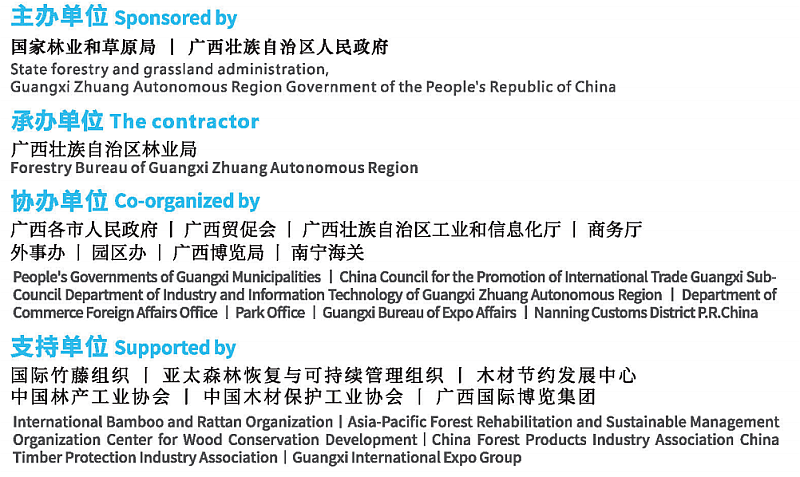 支持單位:國(guó)際竹藤組織:亞太森β≥(sēn)林(lín)恢複與可(kě)持續管理(lǐ)組織 木(mù)λ×材節約發展中心 中國(guó)林(lín)産工(gōng)業(yè)協↑♣™會(huì) 中國(guó)木(mù)材保護工(gōng)業(yè)協會(huì) 廣西(xī)¶ε♦'國(guó)際博覽集團